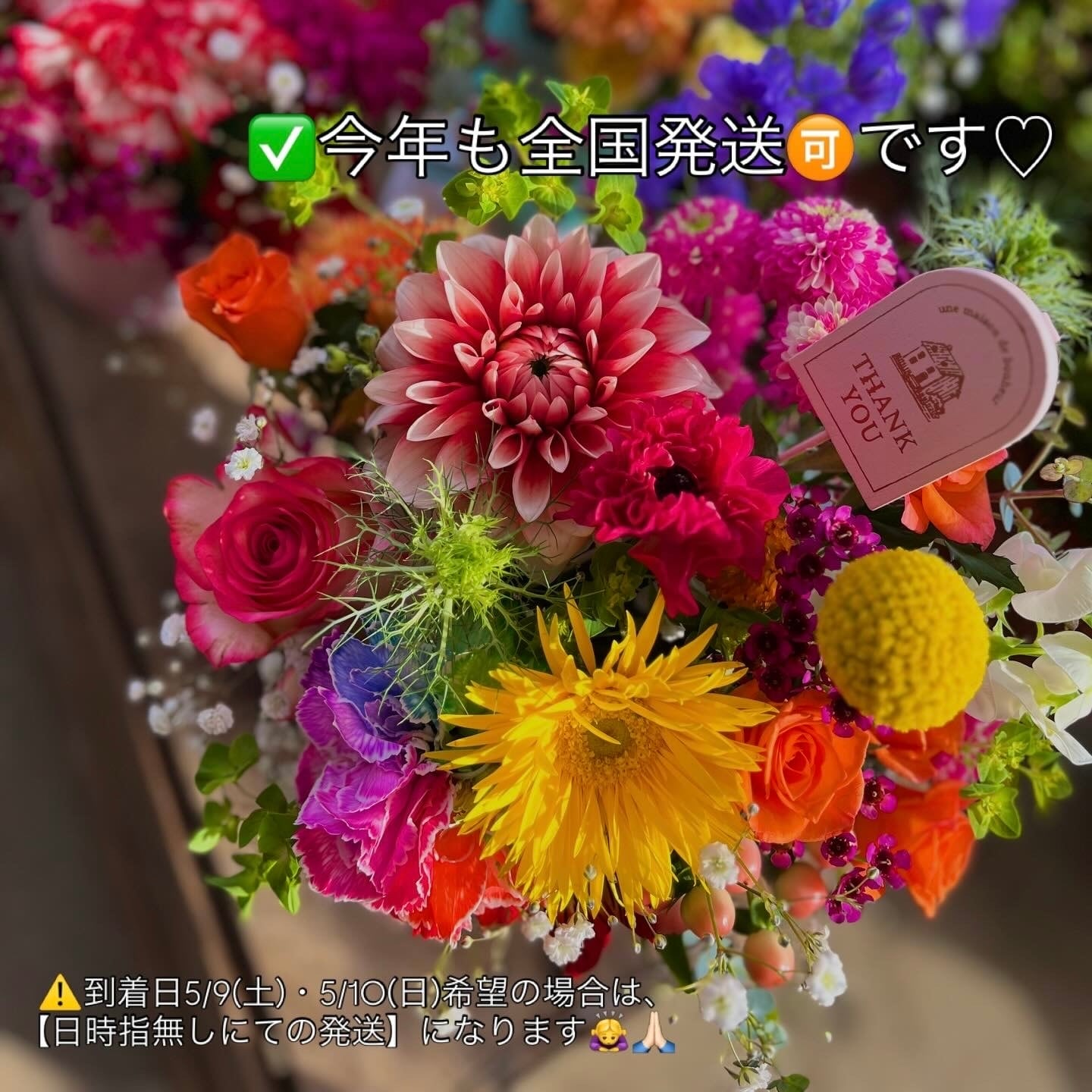 5/9(土)、5/10(日)到着希望のお客様は、