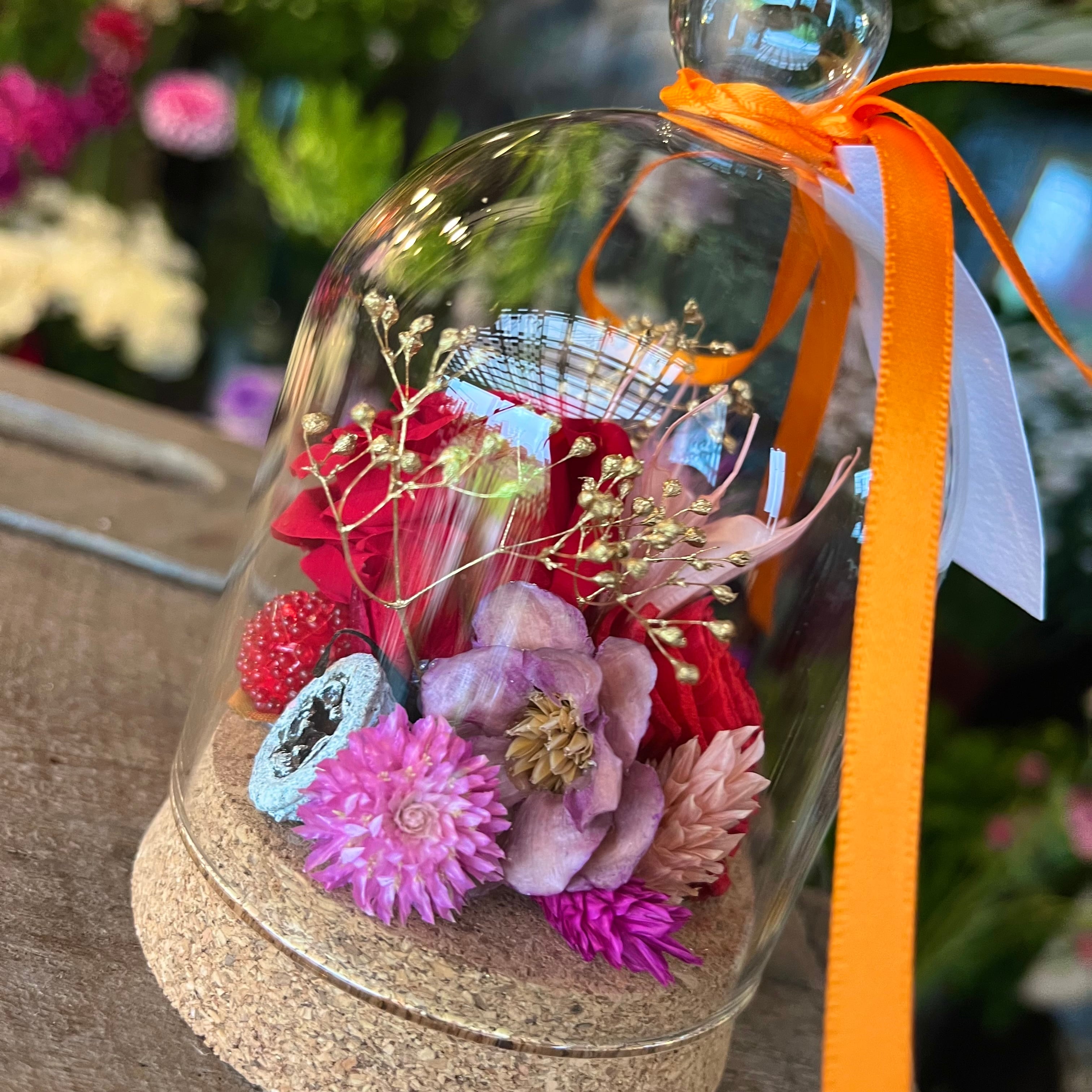 ガラスドームドライフラワー